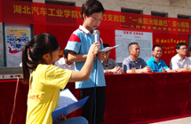 7月10日上午,湖北汽車工業(yè)學(xué)院“V益·青竹”暑期愛心支教團(tuán)的大學(xué)生們在蔣家堰鎮(zhèn)中原小學(xué)舉行愛心捐贈(zèng)活動(dòng)。湖北汽車工業(yè)學(xué)院副院長閔祖?zhèn)魍、縣教育局副局長周躍忠同志以及相關(guān)領(lǐng)導(dǎo)都趕來支持。