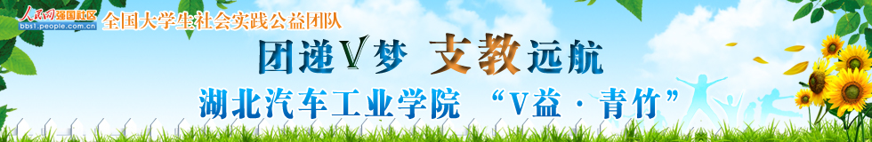 接下來他們將舉辦文藝匯演,通過知識(shí)競賽、手工制作展、舞蹈表演、歌曲合唱等,來展示孩子們所學(xué)。并將此次支教之行拍成微電影,記錄團(tuán)隊(duì)的所見所感,傳遞留守兒童的夢想...詳情>>> 6月29日,為了更多的幫助到實(shí)踐地的留守兒童,湖北汽車工業(yè)學(xué)院外國語學(xué)院“V益·青竹”愛心支教服務(wù)團(tuán)分別在火車站、六堰廣場及人民公園附近義賣報(bào)紙,并于晚上19時(shí)在六堰廣場舉行了“一米陽光暖庸巴”愛心募捐活動(dòng);顒(dòng)當(dāng)日籌集到的1020元善款將全部為中原小學(xué)的留守孩子們購買書籍、文具等。