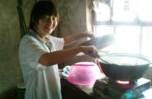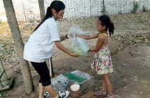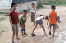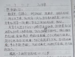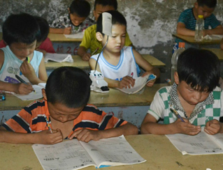 鄉(xiāng)村小學(xué),沒有體育器材,沒有娛樂設(shè)施,孩子們只能選擇自娛自樂。有次,志愿者們看到孩子們用一根細(xì)樹棍,一塊石柱,就玩起了翹翹板。每到夜晚,志愿者的住處就擠滿了學(xué)生,大家或做游戲,或一起用筆記本電腦看哆啦A夢,從孩子們看動畫片的那份專注,志愿者們看得出來,孩子們很少能看到這種動畫片。天陰教室昏暗,加上學(xué)校經(jīng)常斷電,孩子們不得不在陰暗的環(huán)境中上課。老師拿來自己的小臺燈給在角落的孩子照明,即使在這樣的情況下,孩子們依然學(xué)習(xí)很認(rèn)真。申倩老師應(yīng)該是最受歡迎的啦,她多次收到孩子們的“示愛書信”,那些小紙條上往往寫著“音樂老師你唱的歌很好聽,我喜歡你”