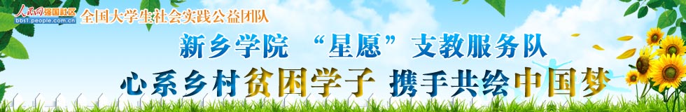 “星愿”義務(wù)支教服務(wù)隊(duì)于2009年成立,現(xiàn)有支教志愿者120余名。除多次開展暑期社會實(shí)踐支教活動外,在校期間他們還堅(jiān)持每周二下午赴貧困小學(xué)義務(wù)支教活動。五年來,他們參與支教的次數(shù)達(dá)100余次,9000余小時課時。他們與新鄉(xiāng)市紅旗區(qū)平原小學(xué)、封丘縣潘店鎮(zhèn)老莊小學(xué)建立了長期幫扶關(guān)系,還在延津縣榆林鄉(xiāng)大榆林小學(xué)、夾堤小學(xué)建立了愛心支教服務(wù)基地。