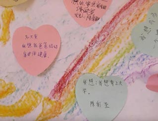 在“人體拷貝”和“蛇戰(zhàn)”項目中,學生們都充分展現(xiàn)了自己內(nèi)心童真的一面,他們積極熱情投入,就算受傷也阻擋不了他們的熱情。心愿墻上,寫滿了孩子們的愿望。有位孩子寫著寫著就哭了,他在心愿墻上寫著:我要做一個好孩子。有孩子寫 “希望爸爸媽媽健康快樂”、“我想爸爸媽媽,想爸爸媽媽時我就會跳舞”等字樣。隊員們看了心里酸酸的,其實孩子們的愿望都很小很小,但是他們的世界卻很大很大,童年是塑造人生的關(guān)鍵時期,希望社會能夠?qū)α羰貎和o予更多的關(guān)注,付出我們更多的愛心...
