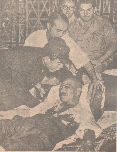 1945年8月,日本無條件投降后不久,東條英機(jī)自知罪責(zé)難逃,舉槍自殺。圖示他中彈獲救時之痛苦情狀。作為頭號戰(zhàn)犯,他在獲救后仍被送上絞刑架。三絞廢命。