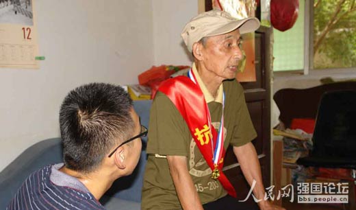 2015年適逢中國人民抗日戰(zhàn)爭暨世界反法西斯戰(zhàn)爭勝利70周年,人民網(wǎng)作為獨家媒體支持推出“全國大學生紀念抗戰(zhàn)勝利70周年尋訪活動”,引導青年大學生主動、自覺地在社會實踐中學習“歷史課”,緬懷抗戰(zhàn)先烈,傳承革命精神。在尋訪活動中,不少團隊對抗戰(zhàn)老兵進行采訪,記錄老兵們鮮為人知的抗戰(zhàn)故事。