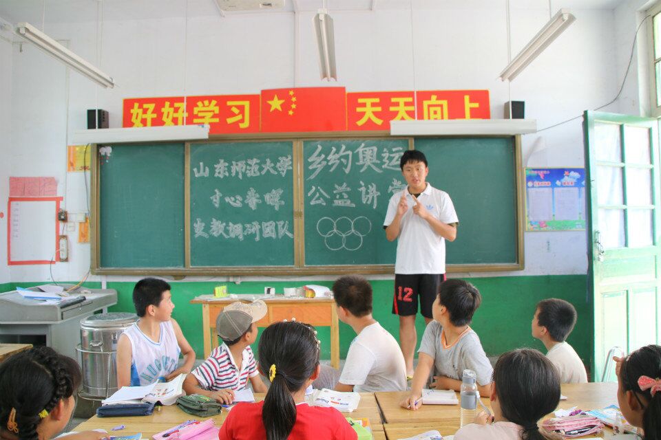 山東師范大學(xué)“寸心春暉”團(tuán)隊給孩子們上奧運課