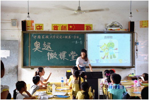 中南民族大學(xué)的實況小組志愿服務(wù)隊到貴州從江縣貫洞鎮(zhèn)龍圖小學(xué)支教,針對當?shù)亓羰貎和狭艘惶镁实膴W運微課堂,并組織開展了龍圖小學(xué)趣味運動會,將奧運理論與實踐相結(jié)合,傳遞奧運精神。