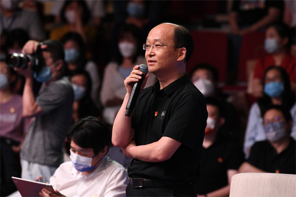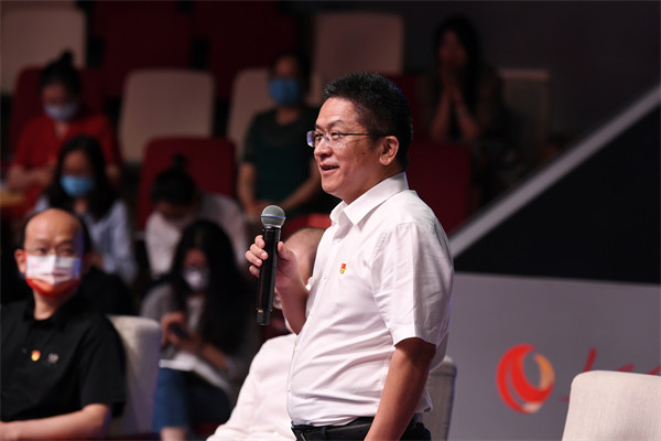 特邀嘉賓中央和國(guó)家機(jī)關(guān)工委基層組織建設(shè)指導(dǎo)部一處處長(zhǎng)黃文明向選手提問