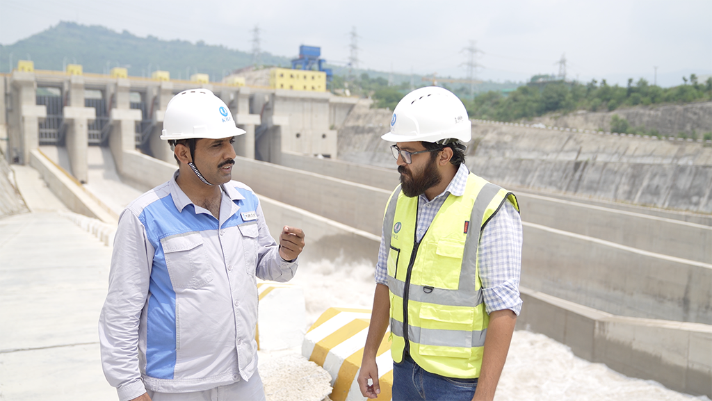 巴方員工在卡洛特水電站壩區(qū)查看水勢情況。(龍飛攝)